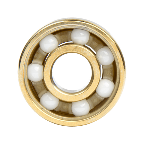 Accelerate faster and roll farther with KwiK Ceramic bearings. These 8mm bearings utilize the advanced characteristics of ceramic balls and combine them with a ceramic Titanium Nitride coating on both sides of the bearing shield and the inner and outer bearing races to create remarkable performance. Aside from the striking metallic gold finish it imparts on the surfaces it covers, Titanium Nitride is a corrosion-resistant material that hardens and strengthens the surfaces it is applied to, improving the lifetime durability of the surface by a factor of 4 or more and further increasing maximum roll. KwiK Ceramic bearings, quite simply, are the most advanced ceramic bearings available.