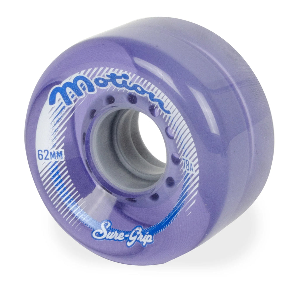 Sure Grip Motion wheels are made of a Super Hi-Rebound Urethane material for the smoothest ride over cement or asphalt. 62mm diameter with a hardness of 78A, they make skating outside much more fun!